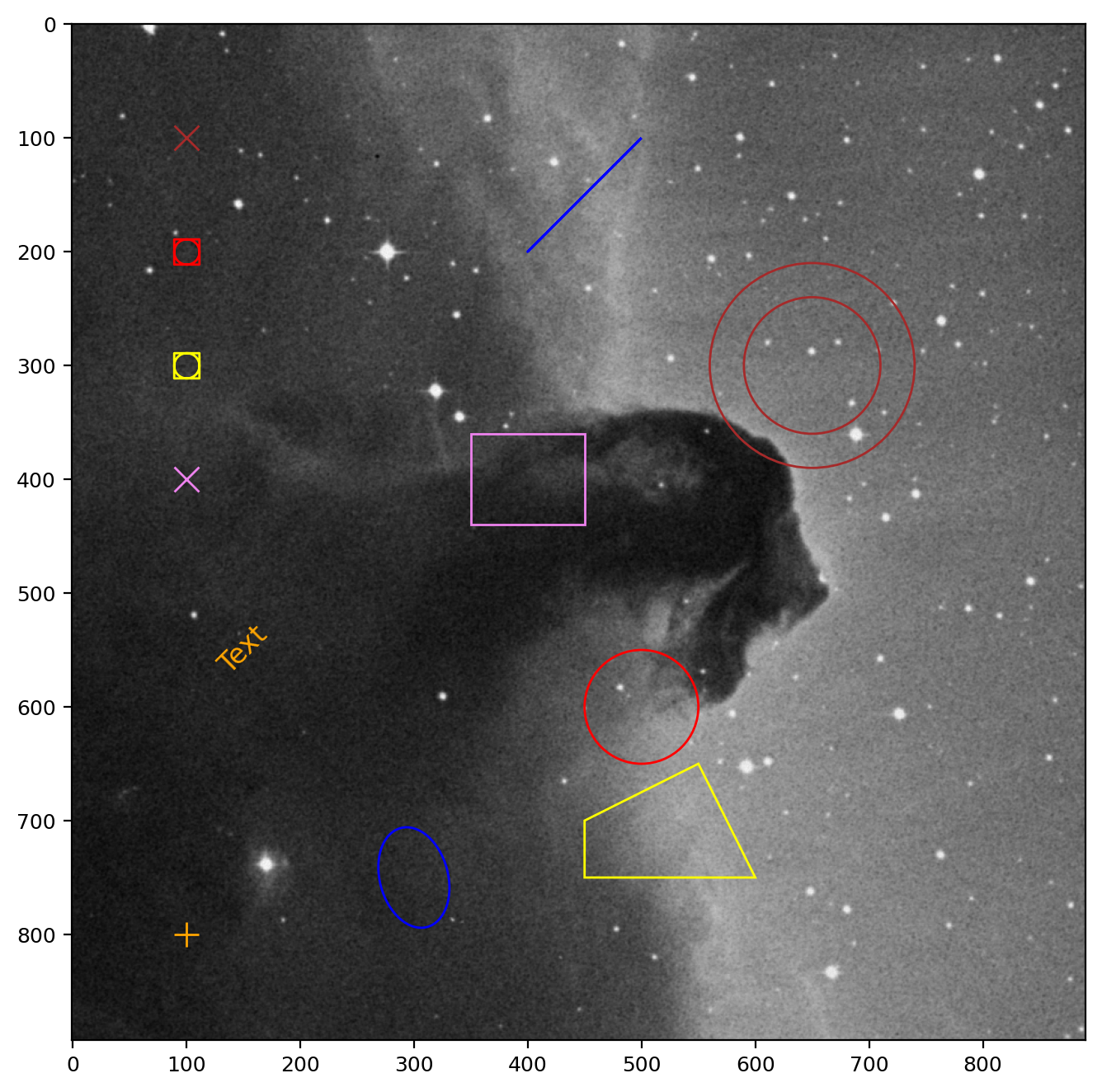 The following example shows how to read a DS9 region file and plot the regions on an image using Matplotlib.